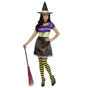 Zestaw zawiera: sukienkę, kapelusz, Sukienka z krótkim rękawem. Góra w kolorze fioletowym zdobiona marszczeniem pry dekolcie. W talii zielony materiał oraz z...