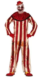 Strój dla dorosłych, klaun morderca w paski, rozmiar L strój dla dorosłych, klaun morderca kombinezon w czerwone paski z długim rękawem i dużym kołnierzem posiada zabrudzenia i ślady krwi rozmiar: L