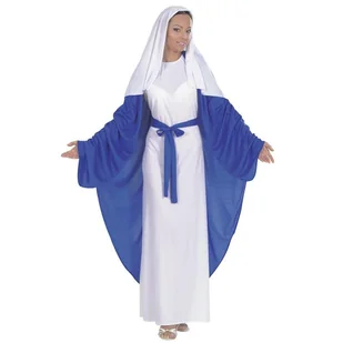 Strój dla dorosłych, Maryja, rozmiar L kostium Maryi dla dorosłych biała tunika z niebieskimi poszerzanymi rękawami połączonymi z peleryną w tym samym kolorz...