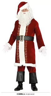 Strój Świąteczny Przebranie za świętego Mikołaja w welurowej wersji Premium. Strój wykonany z wysokiej jakości materiałów: Nakrycia wykonane są z przyjemnego w dotyku, welurowego materiału, zakończonego puszystym, białym futerkiem na krawędziach. Kolor: czarny, czerwony Materiał: poliester Rozmiar: