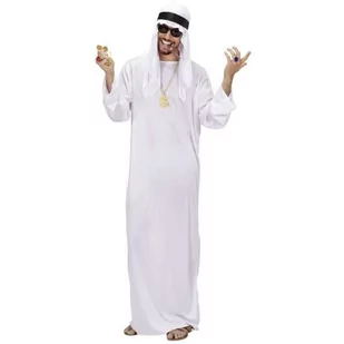 strój dla dorosłych wzór: Arab / Szejk / Muzułmanin to zestaw, na który składa się długa biała szata arabska oraz charakterystyczne białe nakrycie głowy obwód w klatce piersiowej: 100 - 104 cm obwód w pasie: 90 - 94 cm