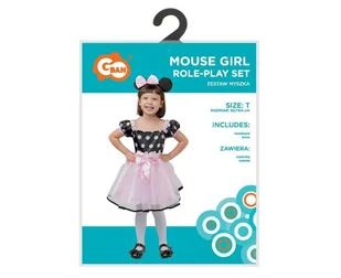 STRÓJ MYSZKI DLA DZIEWCZYNKI W skład stroju wchodzi: sukienka, opaska Rozmiar: 92/104 cm Kolor: szary Materiał: 100% poliester Producent: Godan