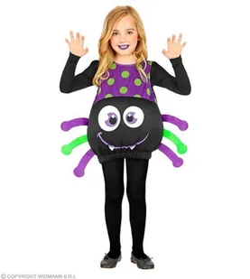 strój pajączka kombinezon bez rękawków, ze ściągaczem u dołu posiada nadruk buzi oraz doczepione odnóża kolor: czarno-fioletowy rozmiar: 110