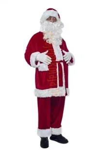 Welurowy kostium Mikołaja - lekki i elegancki. Uwaga: ten produkt nie zawiera widocznych na zdjęciach brody i peruki, butów, rękawiczek i okularów. Dla Państwa wygody przygotowaliśmy gotowe komplety zawierające różne zestawy elementów - zapraszamy! Ich listę można zobaczyć wracając do strony kategorii. Aby od razu przejść do pierwszego kompletu można użyć linku prowadzącego do kolejnego produktu (znajduje się po prawej stronie głównego zdjęcia).