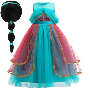 SUKIENKA STRÓJ PERUKA JASMINA DŻASMINA KSIĘŻNICZKA NA BAL KARNAWAŁ 128 134 (Z METKI 130) ⭐Sukienka Strój Jasmina Dżasmina Księżniczka⭐ ⭐Sukienka wykonana z m...