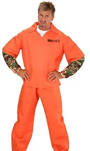 strój dla dorosłych Więzień z tatuażem w zestawie znajduje się: koszulka, spodnie, muskuły z tatuażami kolor: pomarańczowo-czarny rozmiar: XL