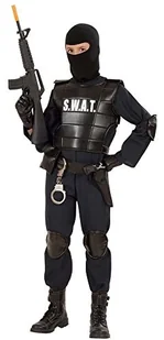 Policja ma wiele jednostek specjalnych. Jedną z nich jest zespół SWAT, który zawsze otrzymuje najtrudniejsze zadania i tylko najlepsi policjanci są przyjmowani do takiego zespołu. Gratulacje, tobie też się udało. Materiał: 100% poliester Kostium SWAT z mnóstwem akcesoriów: Ciemnoniebieski kombinezon wykonany z cienkiej gabardyny z "kuloodporną" kamizelką wykonaną z czarnej imitacji skóry.