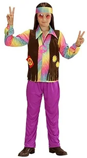 WIDMANN Koszulka Andreas 73346 kostium dziecięcy Hippie chłopiec, kamizelki, spodnie i przyszyte, opaska na czoło, liliowy, rozmiar 128, 128, liliowy