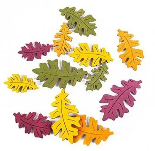 Drewniane liście klonu w trzech rozmiarach i czterech jesiennych kolorach - bordowym, żółtym, zielonym i pomarańczowym. Nie wymagają dodatkowego zdobienia i malowania, dzięki czemu ułatwiają wykonanie efektownych projektów DIY.