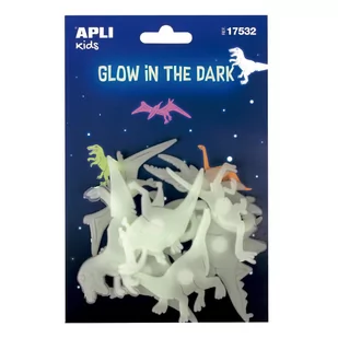 Dinozaury fluorescencyjne Apli Kids rozświetlą dziecięcy pokój wieczorową porą. W zestawie znajduje się 9 naklejek, które można przykleić do ściany bądź sufitu. Naklejki ułatwią zasypianie wieczornym maruderom. Dodatkowo sprawdzą się do przyozdobienia zeszytu, teczki, prac artystycznych. Naklejki nie są wielokrotnego użytku.