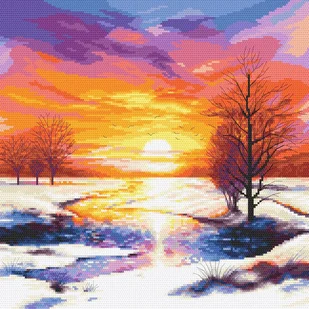 Zestaw do haftu - Romantyczny zachód słońca Zestaw do haftu zawiera: kanwę czystą typu Aida (100% bawełna) o gęstości 54 oczek/10 cm (14ct), mulinę, igłę ora...