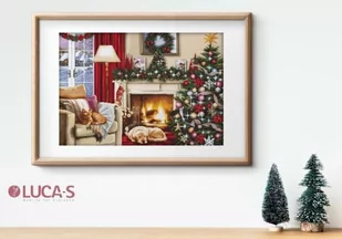 Zestaw do haftu - Świąteczne wnętrze Zestaw do haftu zawiera: kanwę czystą typu Aida beżową z zaznaczoną kratką co 10 oczek (100% bawełna) o gęstości 70 oczek/10 cm (18ct), mulinę firmy Anchor, igłę oraz czarno-biały wzór graficzny. Instrukcja w języku angielskim i rosyjskim. Zestaw nie zawiera ramki. Rozmiar w cm: