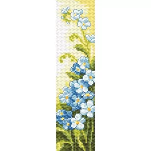 Zestaw do haftu - Zakładka - Niezapominajki Zestaw do haftu zawiera: kanwę plastikową o gęstości 54 oczka/10 cm (14ct), mulinę, igłę i kolorowy wzory graficzny. Tył zakładki należy zakleić tekturką. Tekturka nie jest dołączona do zestawu. Rozmiar w krzyżykach: