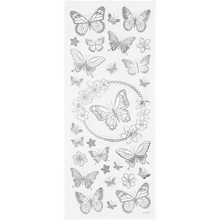 naklejki z folii metalicznej z klejem na papier samoprzylepne na różne gładkie powierzchnie idealne do ozdobienia zeszytów, kartek okolicznościowych, pamiętników itp. jeśli chcemy je trwale przykleić do powierzchni porowatych (np. drewno) warto użyć dodatkowo kleju odpowiedniego do używanego materiału (świetnie sprawdzają się kleje uniwersalne, np. do decoupage) 1 arkusz o wymiarach około 10x24 cm