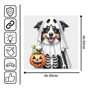 Naprasowanka Halloween Pies Duch Ozdoba Pomysł 7 do 20cm Rozmiar naprasowanki zmieniamy według potrzeby klienta (max 20cm x 20cm. Informujemy, że rozmiar moż...