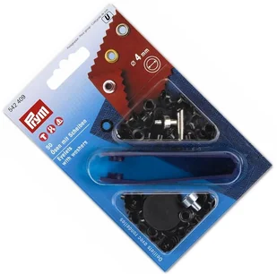 Oczka do tkanin, jeansu, itp. Opakowanie zawiera 50szt. Kolor czarny. producent: PRYM numer katalogowy: 542 409 wzór w opakowaniu: