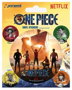 One Piece Live Action Straw Hat Crew - zestaw pięciu naklejek Solidne i wytrzymałe naklejki winylowe. Oryginalna ozdoba z ulubionym motywem. Świetny gadżet dla fana. Znajdź swój ulubiony motyw i zbierz całą kolekcją. Oryginalne gadżety: