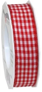 Present - VICHY taśma z krawędzią drucianą - czerwony/biały - rolka 20 m 25 mm