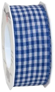 Present - Vichy taśma z krawędzią z drutu - królewski niebieski/biały - rolka 20 m 40 mm