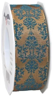 Pattberg Prezent C.E. PATT Berg taśma dekoracja brixen, zadrukowane, wstążka z tafty, z drutem, 40 MM X 20 m, brązowy/petrolfarben 2384020-733