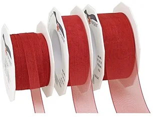 Present - FOUR SEASONS taśma z organzy - czerwona - rolka 25 m 10 mm