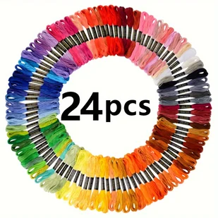TEMU Zestaw Nici do Haftu Krzyżykowego Premium z Poliestru - Długość 8.0 Metra, 6 Sztuk, 24 Różne Kolory, Idealny do Haftu i Prac Ręcznych