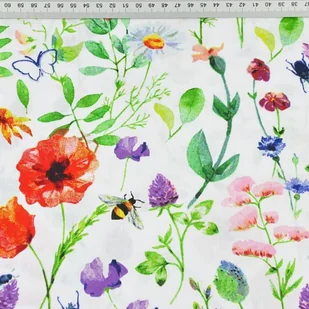 Tkanina bawełniana łąka z owadami na białym tle - 220 cm