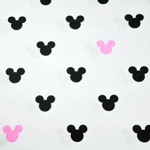 Tkanina bawełniana MIKI czarno różowe na białym tle