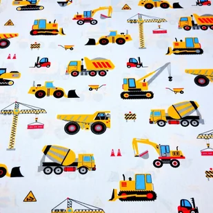 Tkanina bawełniana Roboty budowlane żółte na białym tle