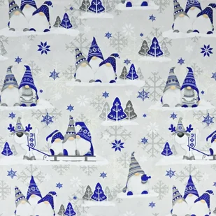 Tkanina bawełniana Wzór świąteczny skrzaty granatowe z reniferem na szarym tle