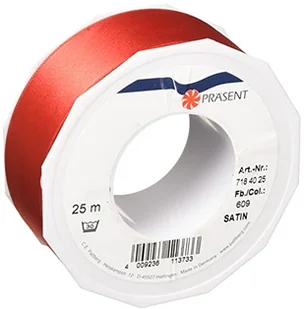 Unbekannt C.E. Pattberg satyna czerwona, 25 m wstążka satynowa do pakowania prezentów, szerokość 40 mm, taśma do pakowania prezentów do dekoracji i majsterkowania, taśma dekoracyjna na prezenty, na każdą okazję 7184025-609
