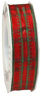 Präsent - NOTTINGHAM taśma z krawędzią z drutu - czerwony/zielony - rolka 20 m 25 mm