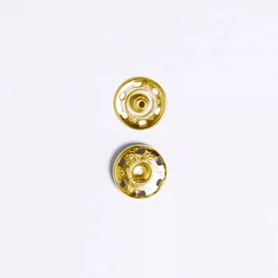 Zatrzaski metalowe 18mm do przyszycia złote Zatrzaski metalowe 18mm do przyszycia ręcznego składające się z dwóch części. Kolor złoty. Cena za blister (6 szt...