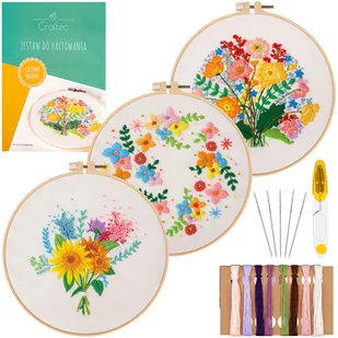 Zestaw do haftowania z 3 gotowymi wzorami Gotowy zestaw do haftowania Craftec z instrukcją. Idealny do rozpoczęcia przygody z dziewiarstwem. Stwórz piękne ob...