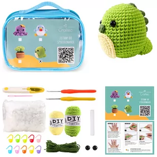 Zestaw do szydełkowania gotowy projekt - dinozaur Odkryj świat szydełkowania dzięki naszemu gotowemu zestawowi! Twórz urocze maskotki korzystając z włóczki, szydełka i instrukcji video. Zestaw zapewnia wszystkie niezbędne materiały i narzędzia, aby wykonać prezentowany projekt. Jest to świetny pomysł na prezent, który zachwyci każdego miłośnika rękodzieła. W skład zestawu wchodzi: włóczka, szydełka, nożyczki, oczka, wypełniacz, klej, znaczniki ściegów, plastikowa igła Cechy produktu: