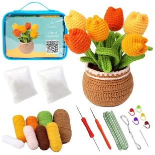 Zestaw do szydełkowania gotowy projekt - tulipany Odkryj świat szydełkowania dzięki naszemu gotowemu zestawowi! Stwórz uroczy bukiet tulipanów korzystając z ...