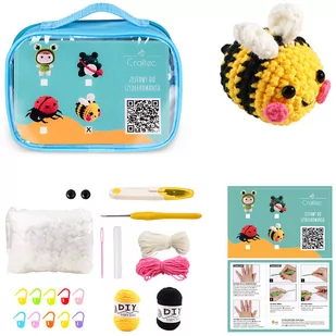 Zestaw do szydełkowania gotowy projekt - pszczoła Odkryj świat szydełkowania dzięki naszemu gotowemu zestawowi! Twórz urocze maskotki korzystając z włóczki, szydełka i instrukcji video. Zestaw zapewnia wszystkie niezbędne materiały i narzędzia, aby wykonać prezentowany projekt. Jest to świetny pomysł na prezent, który zachwyci każdego miłośnika rękodzieła. W skład zestawu wchodzi: włóczka, szydełko, nożyczki, wypełniacz, oczka, klej, znaczniki ściegów, plastikowa igła Cechy produktu: