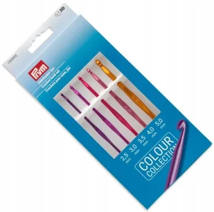 Zestaw szydełek kolorowych 2.5-5.0mm PRYM 195995 4002271959953 Zestaw metalowych szydełek o długości 14cm firmy PRYM w pięknych metalicznych kolorach. Rozmia...