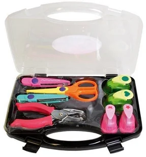 Zestaw dziurkaczy i nożyczek ozdobnych w walizce - 8 elementów