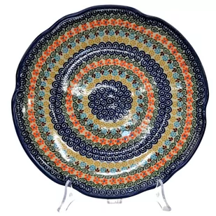 Każda dekoracja ceramiki artystycznej z naszej rodzinnej manufaktury powstała z najwyższą dbałością o detale (ręcznie nakładane stempelki i z pasją malowane dekoracje kwiatowe). Kolekcja użytkowych talerzy oryginalnej ceramiki bolesławieckiej urzeka symetrycznymi kształtami i piękną linia brzegową, dekorowane z pasją i zaangażowanie. Gładka powierzchnia z wytrzymałą powłoką szkliwa i wzmocnionymi krawędziami, odporna na zmywanie w zmywarkach. Talerz to wspaniały pomysł na podanie na stół pięknie ułożonych potraw, wzbogaconych bukietem surówek czy gotowanych warzyw. Sprawdzi się podczas rodzinnych posiłków jak i w czasie specjalnych okazji, kiedy to zastawiamy świąteczny stół (Wielkanoc, Święta Bożego Narodzenia - wigilijne potrawy smakują jeszcze lepiej - podane na oryginalnych naczyniach ręcznie dekorowanych, z Bolesławca).