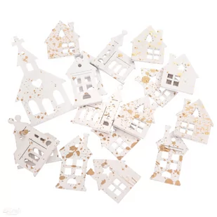 Białe, drewniane domki, posiadające ozdobne złocenia to stylowy dodatek do prac kreatywnych typu cardmaking, scrapbooking oraz home decor. Sprawdzą się doskonale przy zimowo-świątecznych projektach takich jak ozdoby choinkowe, wieńce, stroiki, czy opakowania prezentowe. Liczba śnieżynek w opakowaniu: 15 szt. Wielkość pojedynczych domków: od 3 x 3,5 cm do 4 x 8 cm Materiał: