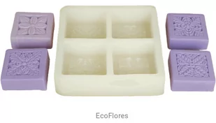 Forma silikonowa Cztery wzory Foremka silikonowa wykonana z trwałego, elastycznego silikonu do wykonywania odlewów z bazy mydlanej, odlewów świec oraz odlewów z gipsu. Na jednej formie znajdują się 4 wzory do wykonania odlewów. Wielkość całej formy : 13 cm x 13 cm Wymiary wykonanego odlewu : 5,5 cm x 5,5 cm Wysokość odlewu :