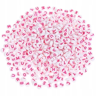 Zestaw akrylowych okrągłych koralików z różowymi literkami 100 sztuk Idealne do tworzenia kolorowych bransoletek z napisami, a także jako dodatek do prac ręk...