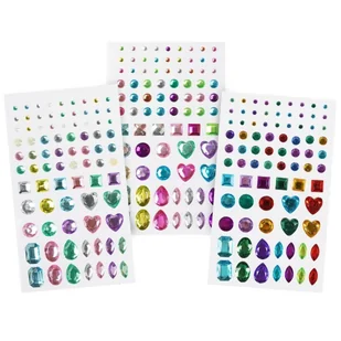 Ozdobne kryształki samoprzylepne w różnych wzorach i kolorach na blistrze. Mix ozdób do prac kreatywnych, szkolnych, dekoracji kartek urodzinowych, zaproszeń...