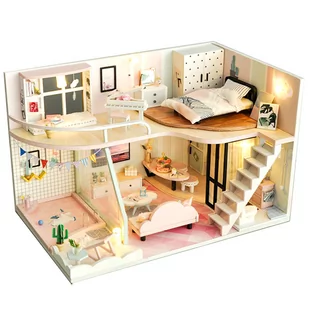 Zaleca się ostrożność przy składaniu domku w obecności dzieci poniżej trzeciego roku życia. Zawartość opakowania: żarówki LED wykrojniki i szablony wszystkie materiały potrzebne do złożenia wszystkie meble ze zdjęcia przydatne narzędzia do pracy (nóż do cięcia papieru, nożyczki, klej uniwersalny do drewna i papieru, linijka, śrubokręt) instrukcję w języku polskim oraz instrukcja w języku angielskim