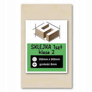 Sklejka o wymiarze 25x50cm grubość: 8 mm, wymiary: 250mm x 500mm Klasa II, 1 szt. – Brzozowa, Idealna do Lasera, CNC i Grawerowania Sklejka 8 mm suchotrwała,...