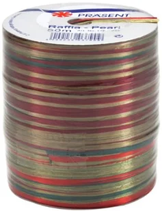 Präsent RAFFIA PEARL-wielokolorowa taśma łykowa czerwona / zielona / złota, 50 m metaliczna taśma dekoracyjna do prezentacji, do ozdabiania i majsterkowania, taśma prezentowa na uroczyste okazje