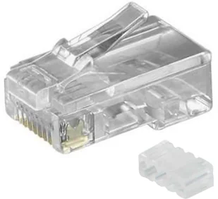 Nieekranowane złącze RJ45 8p8c UTP kat.6 dla sprzętu telekomunikacyjnego zaciskane na przewody typu drut. Wtyk RJ45 (8p8c) to najbardziej popularny wtyk sieci LAN z ośmioma stykami, używany zazwyczaj do zakończenia przewodów łączących sprzęt sieciowy. Używany np. do połączenia komputera ze switchem lub routerem. Każdy pin pokryty jest warstwą 50 um czystego złota. Złącza są przeznaczone głównie dla sektora telekomunikacyjnego.