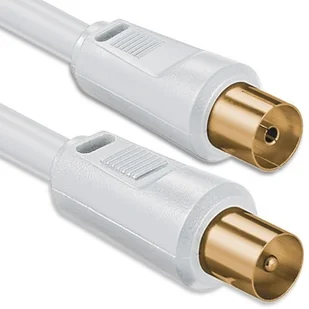 1aTTack.de Kabel antenowy 1,5 metra 2x ekranowany pozłacany, wtyczka koncentryczna > gniazdo koncentryczne (całkowicie ekranowane) Koaksjalny biały St-Ku złoty 85 dB