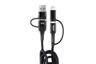 KABEL USB/USB-C 3W1 NA LIGHTNING, USB-C, MICRO USB 1MOpis towaruSpecyfikacja: nylonowy oplot zapobiega przecieraniu i łamaniu kablasolidne złączatechnologia zapobiegająca przeładowaniu smartfonakolor: czarnydługość kabla: 100cmzłącza: USB - USB-C - micro USB - Apple lightningmożliwość transmisji danychtyp kabla:
